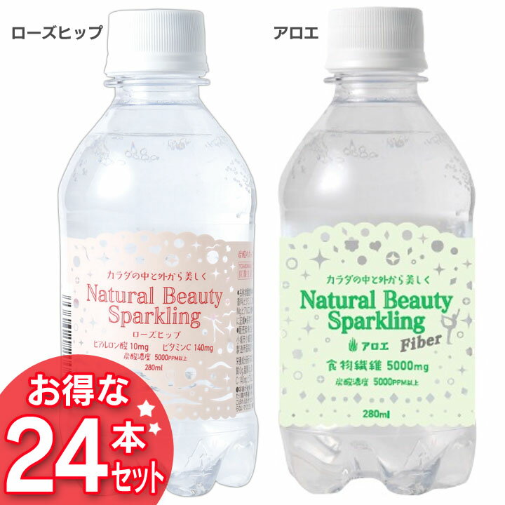 ナチュラルビューティースパークリング 280ml 24本セット炭酸水 強炭酸 飲料水 ヒアルロン酸 ローズヒップ フレーバー付き ノンカロリー【D】